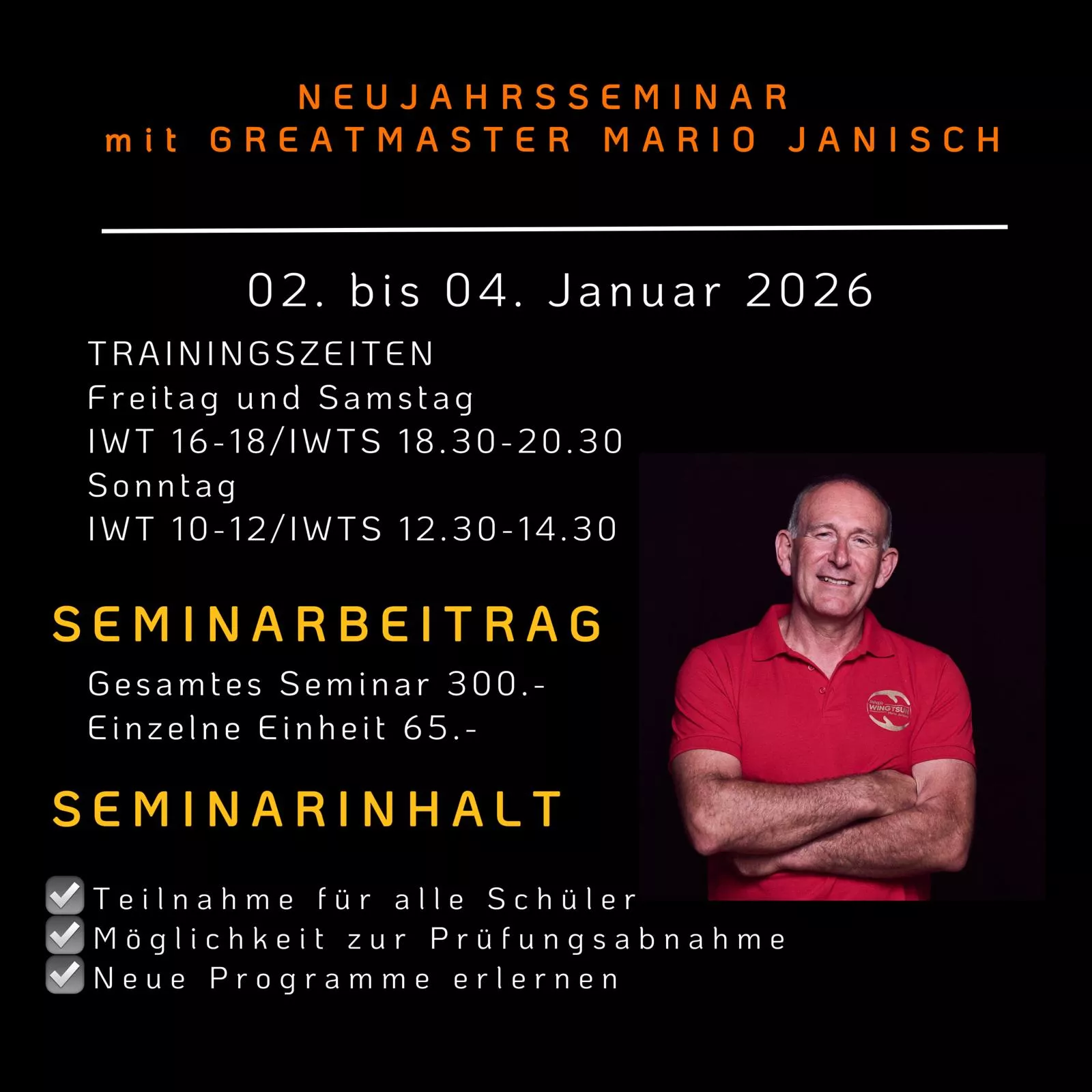 Für weitere Infos zu den Seminaren, Lehrgängen und Prüfungen bitte um Kontaktaufnahme